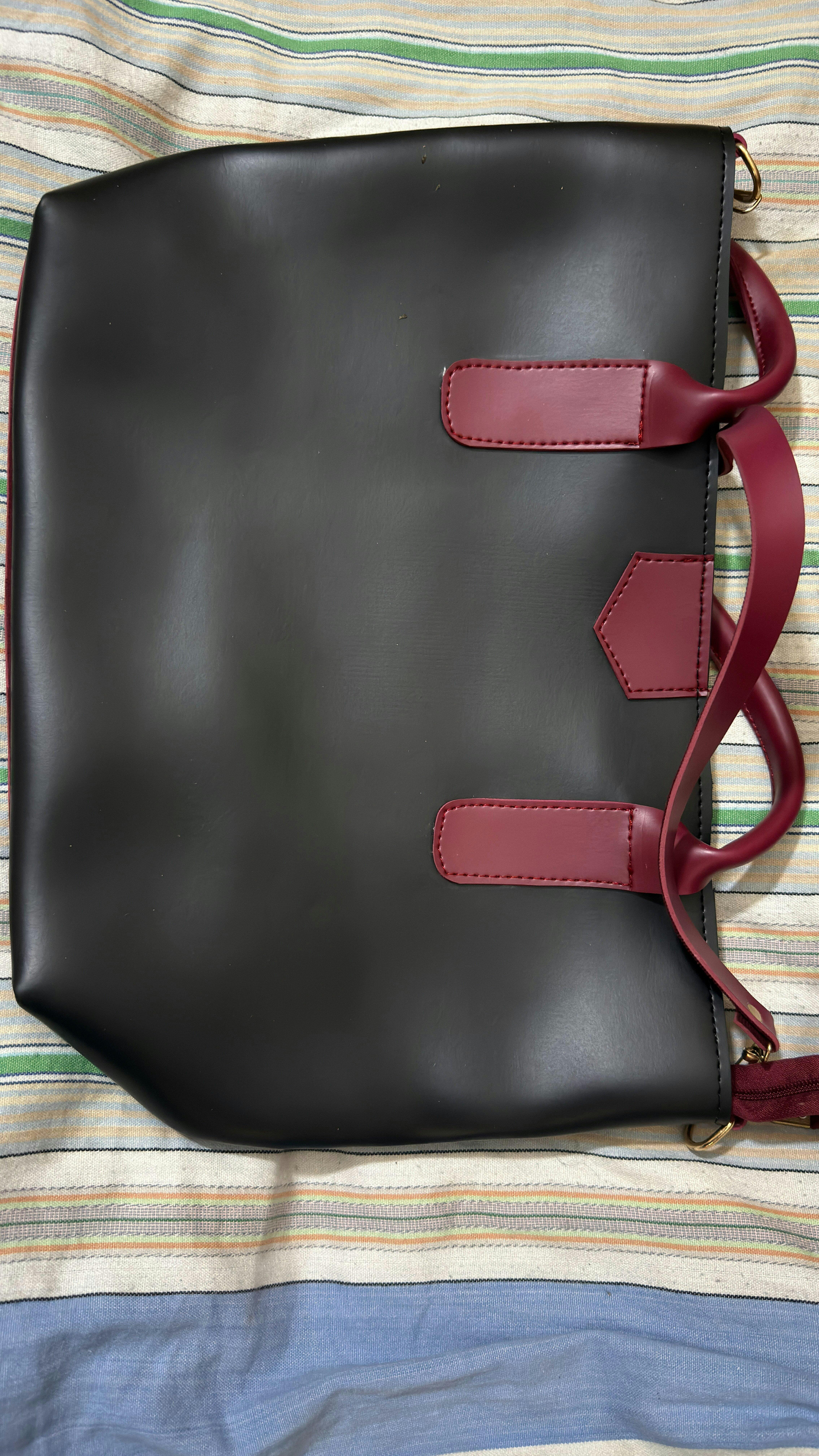 Add a touch of sophistication to your everyday look with our Elegant Two-Tone Bag. Designed with a sleek black body and vibrant dark pink accents, this bag perfectly balances style and practicality.