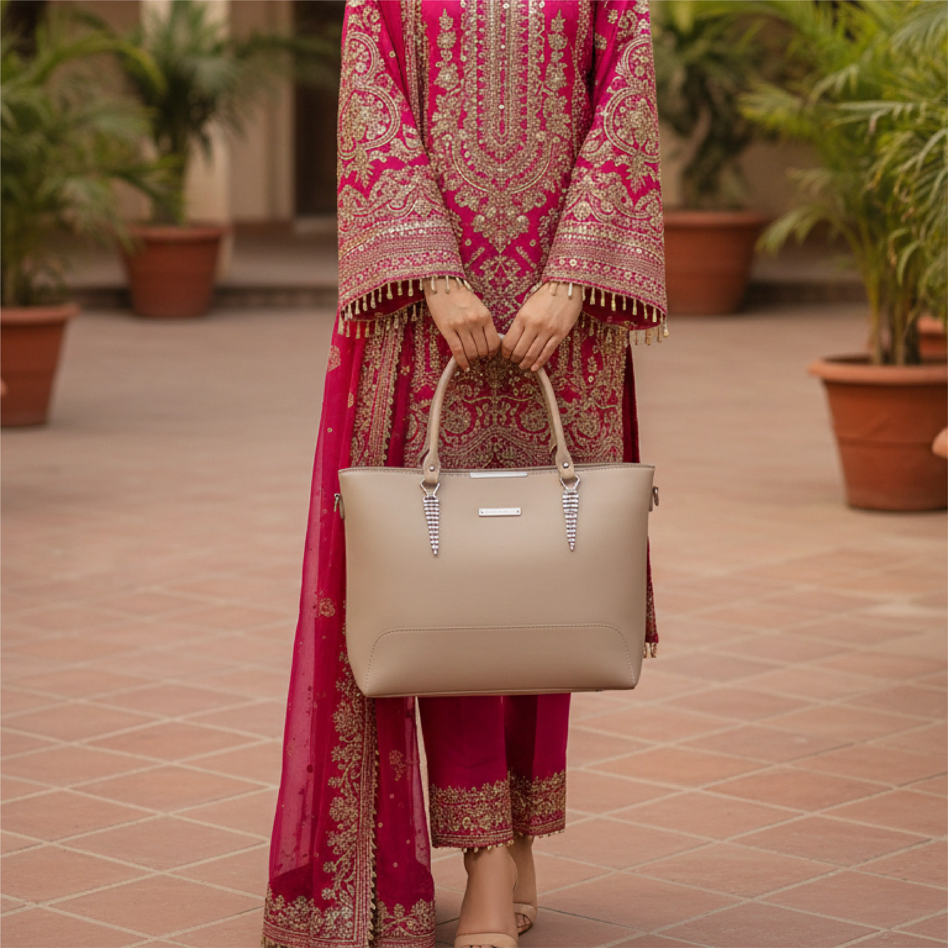 A classic silhouette with a dazzling edge. This Black Diamante Chain is the perfect accessory to carry you from boardroom meetings to evening events. Crafted from sleek smooth faux leather, this bag offers a structured, sophisticated look that instantly elevates any outfit.
