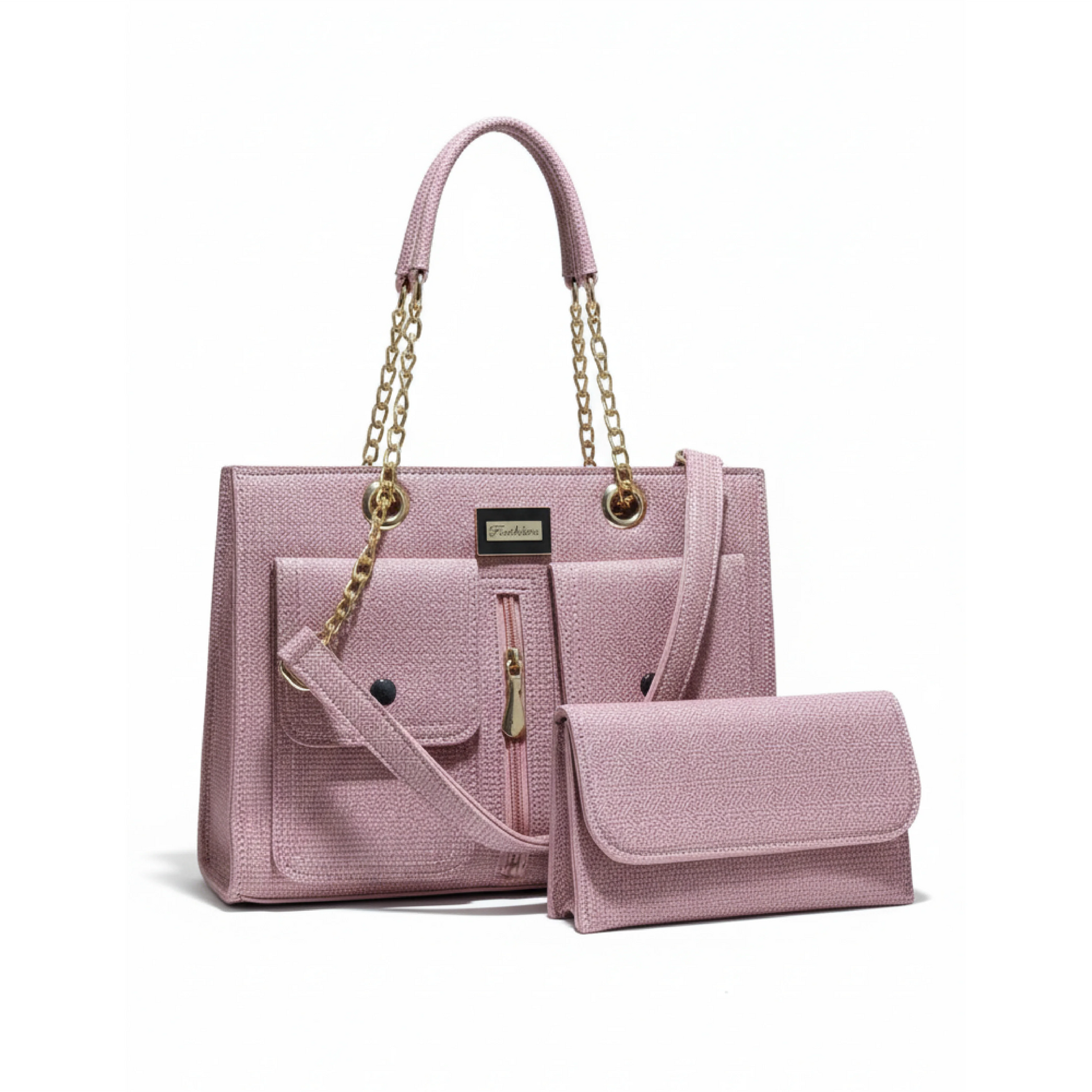 Experience sophisticated texture and superior organization with the Slate Blue Tweed Chain Set. This 3-in-1 set features a beautiful, textured tweed-style faux leather in a soft, versatile slate blue. Its polished gold chains and clean, structured form make it a chic choice for any occasion.